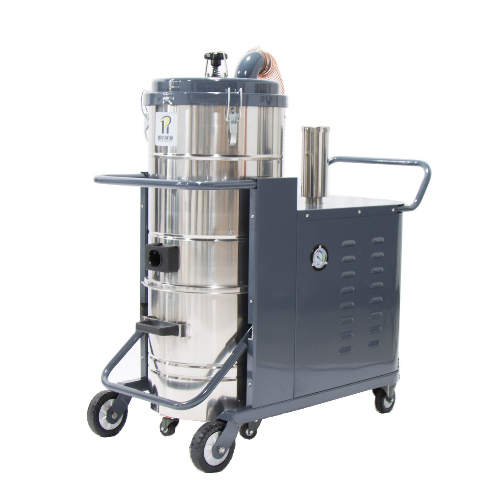 整机结构方面,集尘系统和动力系统并列放置,是工业吸尘器*经典机型,此结构运行平稳,移动平稳。